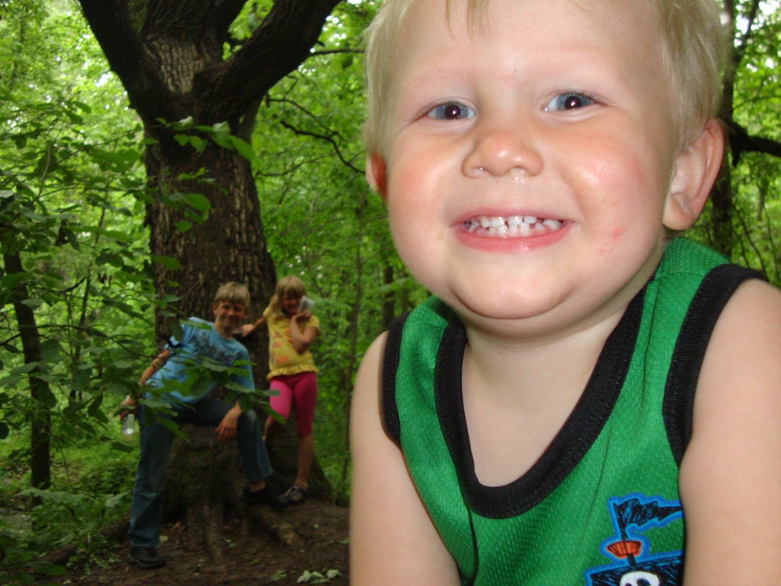 The kids love it out here. Lane really loves the woods. He gets down in the dirt and digs for stones and climbs trees.
